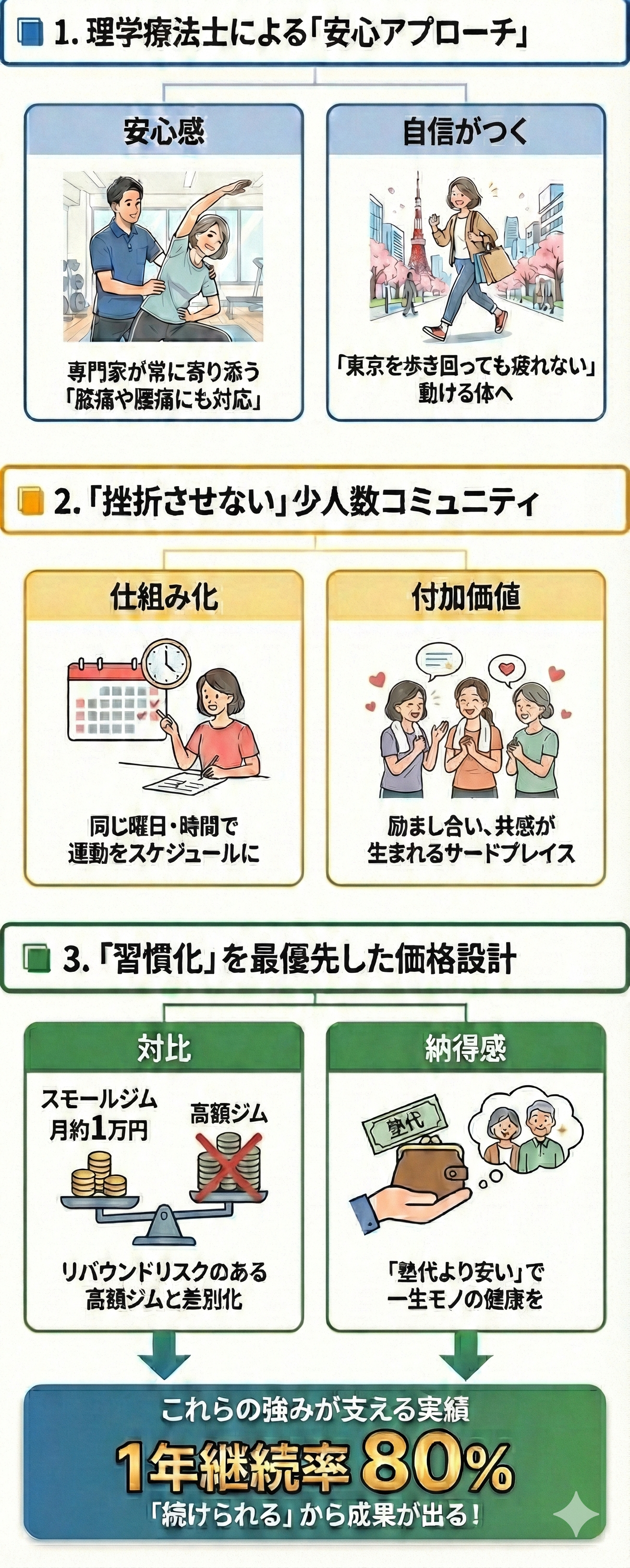 だから、週1回・少ない運動量でも、確実に「体重が減ってきた」「東京を歩き回っても疲れなくなった」と実感していただけます。